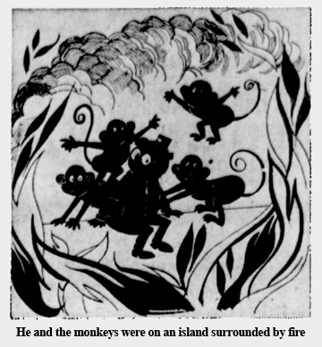 But Mr. Shnoo said, no, they’d had enough but since they liked the reindeer so much they could stay in the reindeer stables until new cages were built. The old monkey house had burned to the ground.