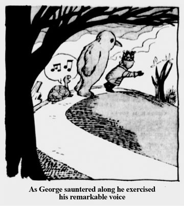“Well, come along, come along.” grumbled George, starting down the road. “We’ll go together but you must not interrupt me when I practice my singing.”